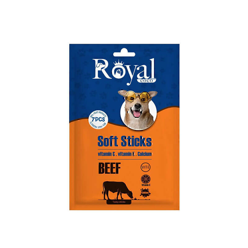 اسنک تشویقی مدادی نرم سگ «رویال کوکو» با طعم گوشت گاو (بسته 7 عددی)