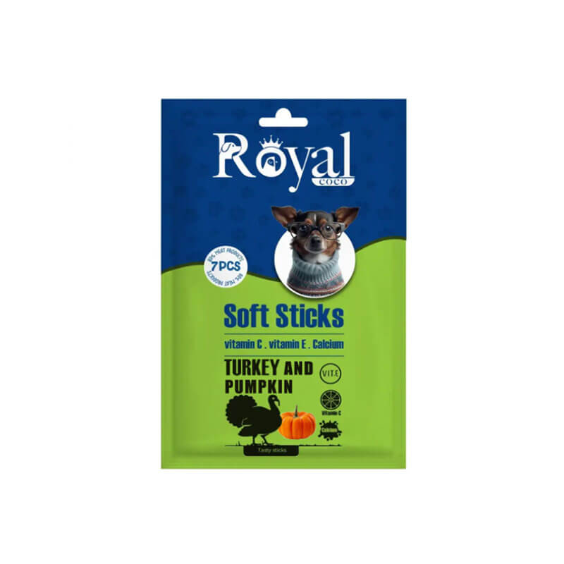 اسنک تشویقی مدادی نرم سگ «رویال کوکو» با طعم گوشت بوقلمون و کدو تنبل (بسته 7 عددی)