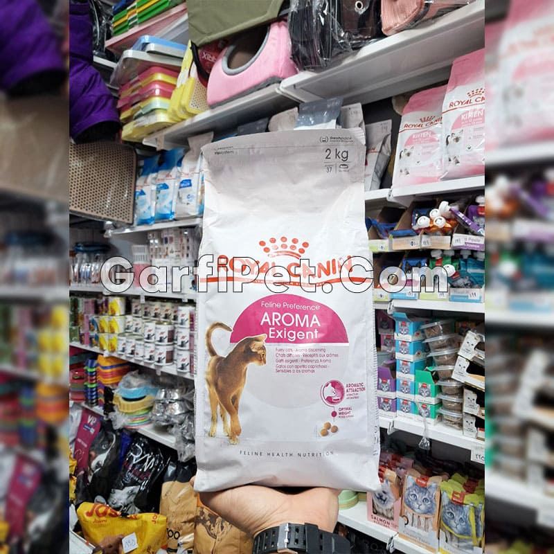 غذای گربه آروما اگزیجنت (Aroma Exigent) رویال برای گربههایی است که علاوه بر طعم و بو شکل ظاهری غذا نیز جذبشان میکند و این نوع غذا به علت داشتن دو نوع متفاوت دانه که هم از لحاظ ظاهری و هم بافت با هم تفاوت دارند باعث جذب گربه میشود. این غذا مخصوص گربههای بد اشتها و بد غذا است.